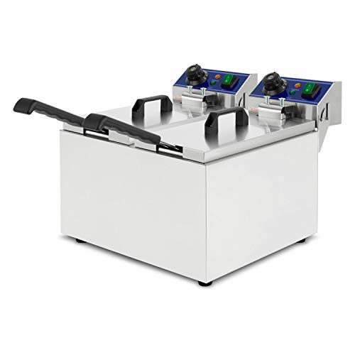 Vertes Friggitrice elettrica 2x8L (2x3000 Watt, cestino per friggere, temperatura regolabile fino a 200°C, principio della zona fredda, acciaio inox)