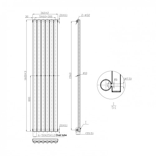 1600 x 360 mm Vertical Column design ovale singolo pannello bianco radiatore riscaldatore