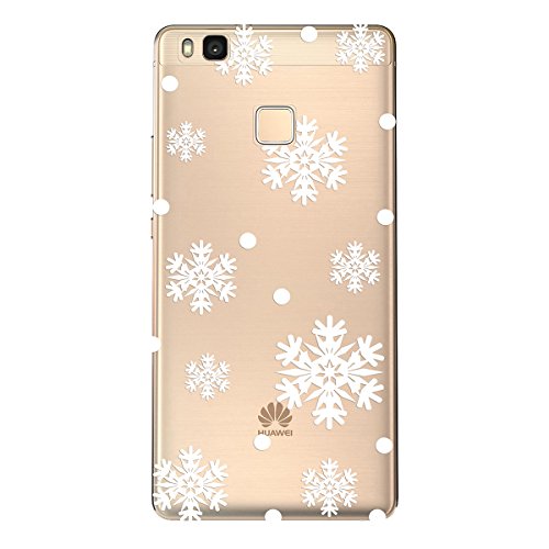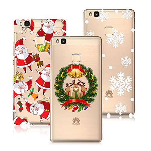 3 in 1 VertTek Natale Serie Silicone Cover Per Huawei P9 Lite Crystal Custodia Case 3D TPU Gel Gomma Bumper Protettivo Skin Ultra Sottile Cartoon Flessibile Morbido Protettiva Shell con Funzione di Tappo Anti Graffio Anti Scivolo Trasparente Protettore Colorato Babbo Natale + Corona di Natale + Fiocco di Neve