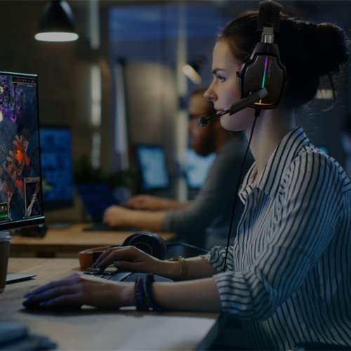 Vertux Havana cuffie da gioco HD con microfono con isolamento acustico, controllo del volume, morbidi padiglioni imbottiti e luci LED arcobaleno, NERO