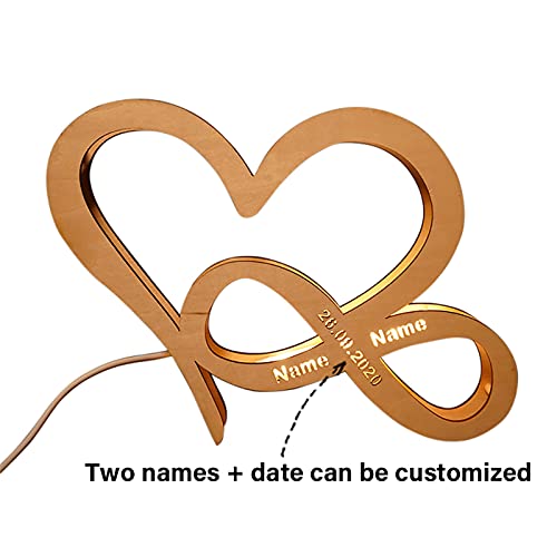 Y.verve, Nome inciso Lampada personalizzata Luce notturna Nome Luce Cuore Simbolo infinito Luce Lettera Luce Anniversario per le donne(Cuore)