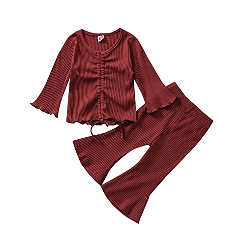 Verve Jelly Bambini Neonate 2 pezzi Pantaloni svasati lavorati a maglia Outfit Halter Tinta unita T-shirt con coulisse Top Pantaloni a zampa Set rosso 120 4-5 anni