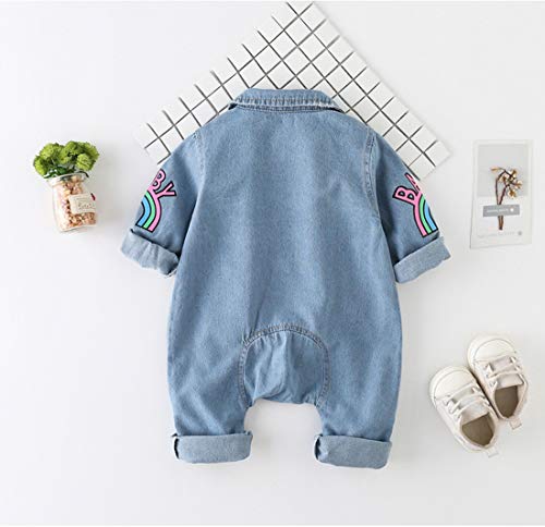 Verve Jelly Pagliaccetto in denim da neonato Tuta intera con risvolto manica lunga con stampa arcobaleno Tuta intera in jeans