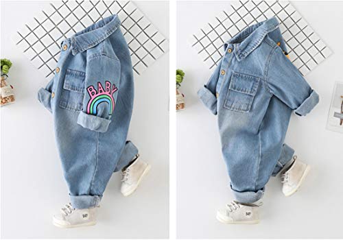 ✔ Materiale: tuta in denim da bambina, tessuti in denim di alta qualità, morbidi, traspiranti e confortevoli, delicati sulla pelle, nessun danno alla pelle del bambino.