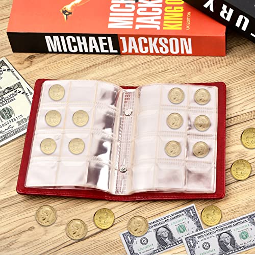 Vesaneae Album da Collezione di Monete, Album per Monete da 120 Tasche, Album Monete 2 Euro, Album Della Collezione di Monete, Porta Monete da Collezione, Raccoglitore per Collezione di Monete (Rosso)