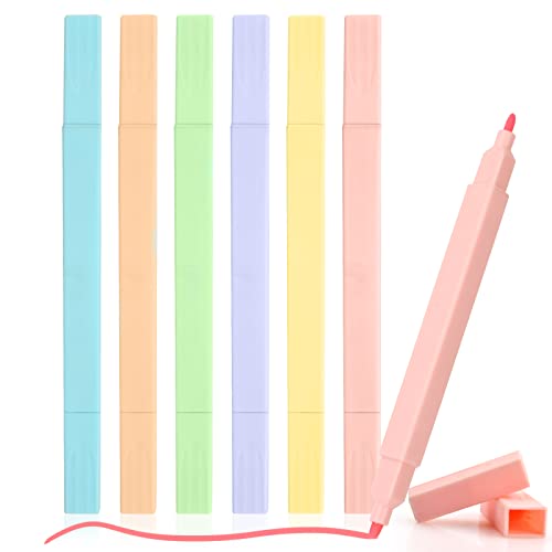 Vesaneae Set di 6 evidenziatori a doppia testa,Evidenziatore colorati 2 in 1,Pennarelli Fluorescenti per Scrittura Liscia,Evidenziatori Colori Assortiti,per Diario Planner Scuola Ufficio
