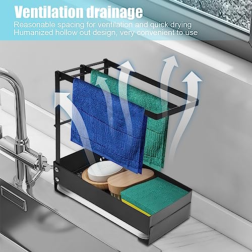 Vesaneae Organizer per Lavello de Cucina, Espandibile Porta Spugne Cestino con Barra, Scolapiatti Retrattile da Cucina, Antiruggine Porta Spugne Lavello Cestello, Scolapiatti a Parete (Nero)