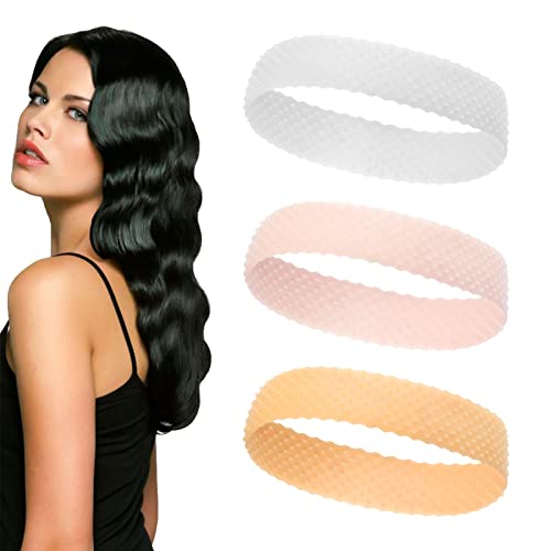 Vesaneae 3 Pezzi Fascia in Silicone per Parrucche,Antiscivolo Fascia per Parrucca, Fascia Elastica per Parrucche, Fascia Resistente al Sudore per Capelli per Donna(Bianco/Marrone Scuro/Marrone Chiaro)