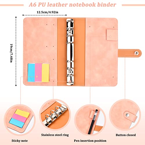 Vesaneae Raccoglitore Notebook A6, Legatore di Bilancio con Busta, A6 Raccoglitore ad Anelli in Pelle, Raccoglitore di Bilancio per Budget di Contanti Organizzatore di Buste Risparmio di Denaro (Rosa)