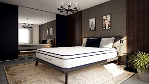 Vesgantti, materasso a molla con schiuma a memoria di forma, design ergonomico per dormire, 26,2 cm, White, 5FT UK King (152 x 200 x 26cm)