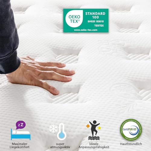 Traspirante: molle insacchettate per una migliore stabilità e ventilazione del materasso. Dal momento che questa ha un nucleo a molla, qui si lascia passare l'aria. Così non si suda tanto come su un materasso in pura schiuma.