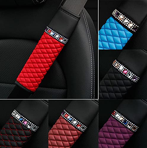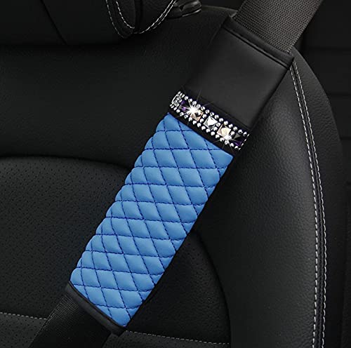Veshow - Protezioni per cintura di sicurezza per auto, protezione per cintura di sicurezza, morbida e confortevole, con strass, in pelle, traspirante, per cintura di sicurezza auto(blu)