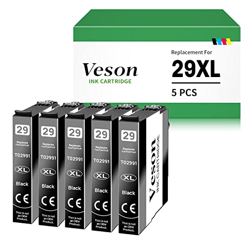 Veson Cartuccia d'inchiostro Compatibile 29 29XL per Epson Expression Home XP-235 XP-245 XP-247 XP-332 XP-335 XP-345 XP-432 XP-435 XP-442 XP-445 XP-452 XP-455 (5 Nero)
