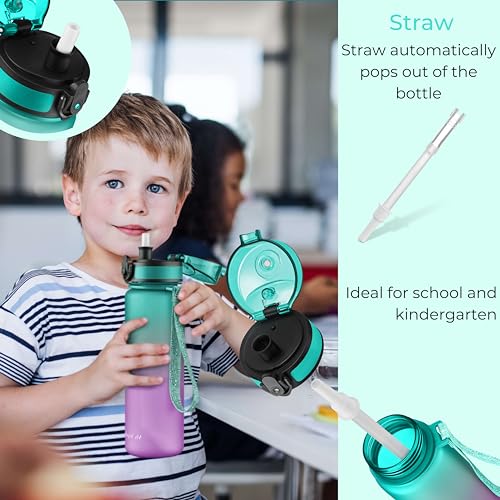 My Vesperbox Minny - Borraccia per bambini a prova di perdite, 350 ml, 500 ml, 750 ml, con cannuccia o colino, leggera borraccia in Tritan, senza BPA, per asilo, scuola