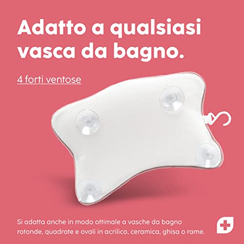 Vesta+ Cuscino vasca da bagno M Rosa con ventose e ganci, Cuscino da vasca test vincitore come cuscini vasca e cuscino per vasca da bagno, cuscino per la vasca da bagno e cuscino per vasca