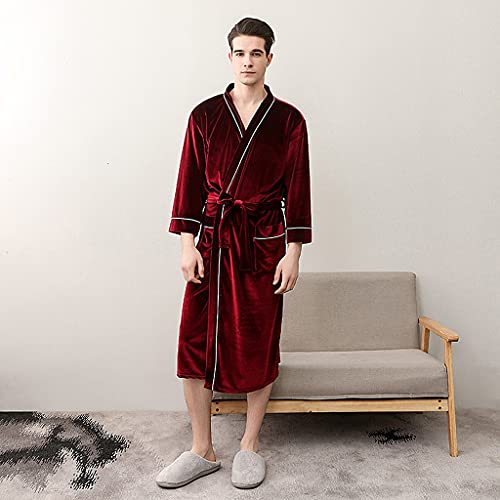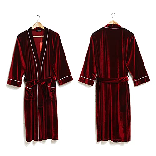 Vestaglie da Uomo in Kimono da Sposa, Lussuose Vestaglie da Uomo in Morbido Velluto di Seta con Tasche E Accappatoi da Cintura per Indumenti da Notte per Tutte Le Stagioni,Rosso,M