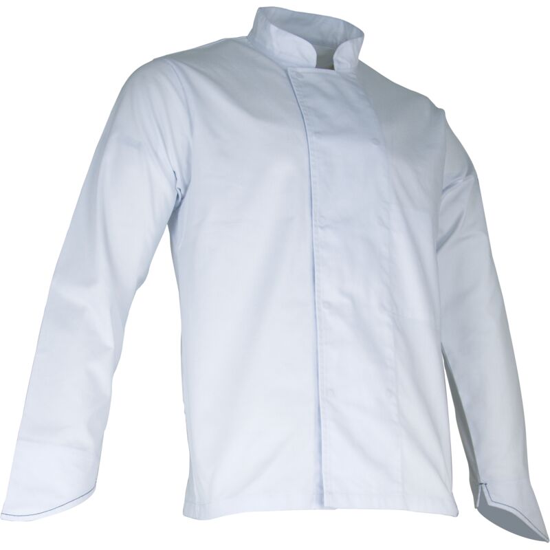 Dettagli: Giacca da cuoco a maniche lunghe Colletto da ufficiale Chiusura con doppio bottone e bottoni a pressione nascosti Tasca portapenne sulla manica sinistra quando indossata, 1 tasca interna Ricamo nero in tinta con gli elementi delle tasche Caratteristiche: 65% poliestere 35% cotone - 245gr/mq BiancoXS
