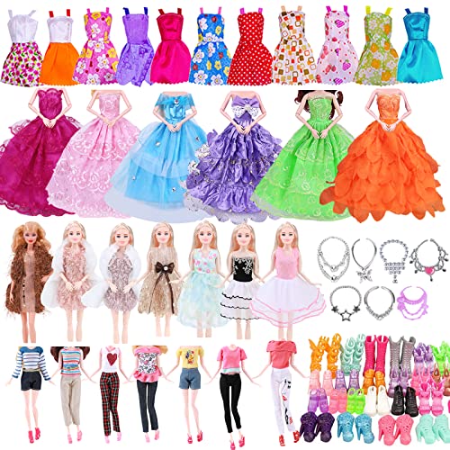 30 vestiti e accessori compatibili con Barbie da 29,2 cm, tra cui 10 scarpe, 6 collane, 5 abiti con bretelle, 3 abiti quotidiani, 2 abiti formali, 2 set di vestiti in compleanno casuale per ragazze