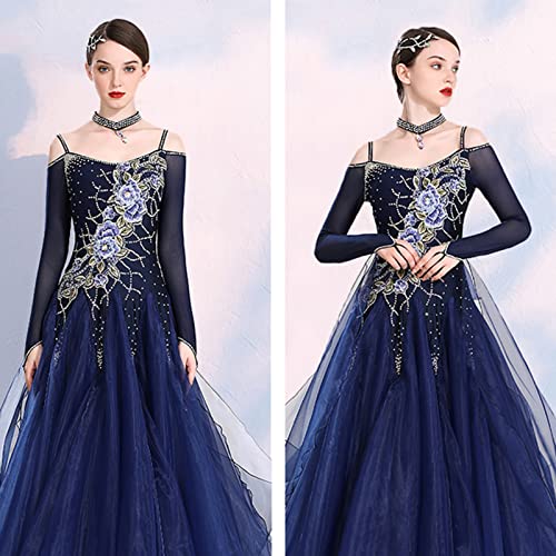 Vestiti Da Ballo Standard Vestito Da Sociale Abiti Da Ballo Standard Nazionali Abiti Da Ballo Di Valzer Da Ballo Da Sala Da Ballo Con Altalena Da Ballo Abito Da Competizione, Marina Militare,XXL