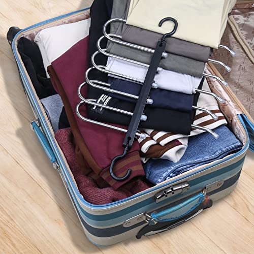 Vestiti Pantaloni Grucce, Risparmio di Spazio Armadio Grucce, 6 Strati 2 Usi Multi Funzionale Pantaloni Rack Guardaroba, Organizzatore Cremagliere per Vestiti Pantaloni Sciarpe Cravatte (nero chiaro)