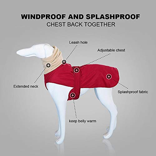 Vestiti per Cani Spessi Super Caldi Giacca Impermeabile per Cani per Cani di Taglia Media Levriero Wolfhound Abbigliamento da Pastore-Rosso_3XL