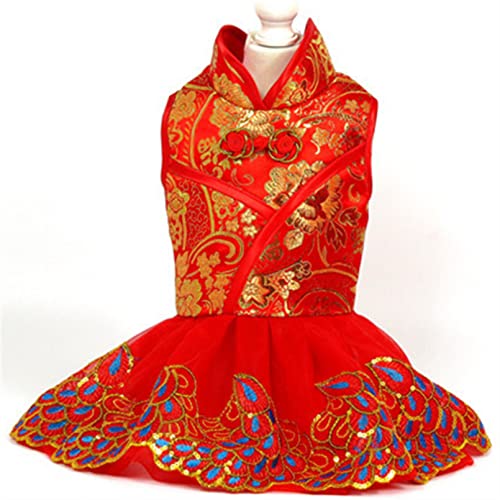 ZNZT Vestiti per Cani Vestito Estivo per Cani Capodanno Pet Outfit Cat Abbigliamento per Cane Tang Suit Cheongsam Barboncino Bichon Yorkshire Pomeranian Pet Dog Clothes