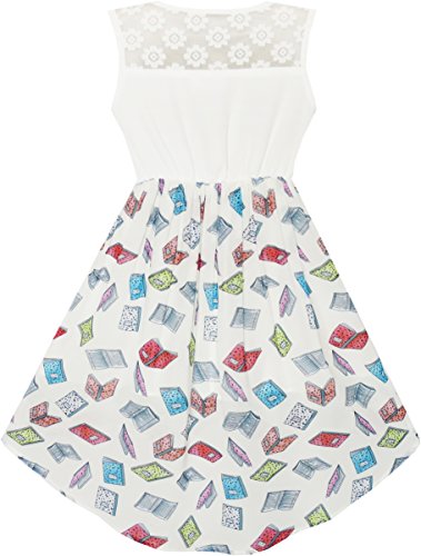 Vestito Bambina Pizzo Libro Stampato Legato Vita Uniforme Scolastica Sole 7 Anni