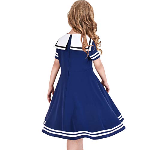 Vestito Bambina Swing Uniforme Scolastica Cravatta a Farfalla Marinaio Collare Manica Corta 10 Anni