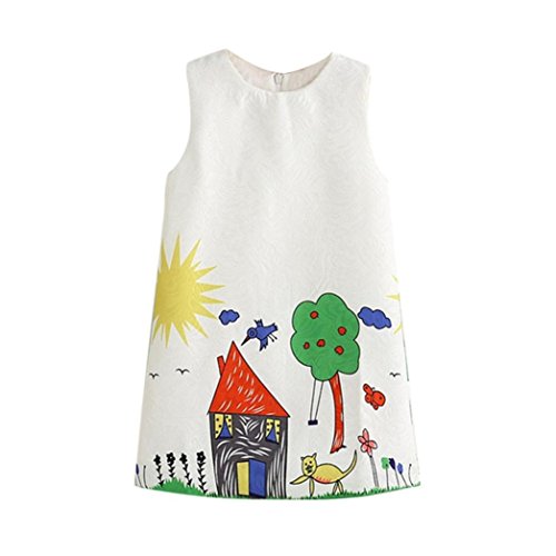 Vestito Cotone Manica Corta Floreale Abito Principessa Casual Vestiti Bambina, UOMOGO Abito Bambina Ragazze Abiti Vestito 1-5 Anni (età: 2-3 Anni, Bianca)