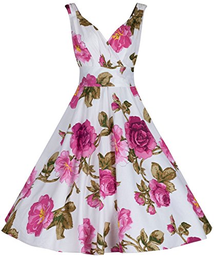Vestito da damigella d'onore in stile vintage, anni ‘40 e ‘50, con stampa di rose, svasato, in cotone, con cintura Light Purple 44
