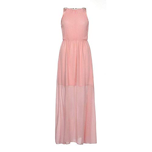 Vestito Donna Elegante Cerimonia Chiffon Prom Serata Lungo Abito Senza Maniche Spiaggia Sera Maxi Abito (Rosa, s)