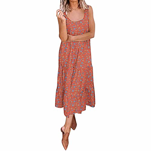 Vestito Donna Elegante Estivo Vestito Lunga Abito Floreale Bohemian Abito da Spiaggia Sciolto Casual Prendisole Senza Maniche Maxi Abito Elegante Vestito Mare L0264