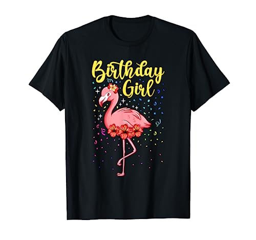 Ragazza di compleanno. Divertente decorazione per feste di compleanno con fenicottero