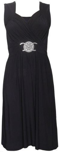 Vestito da donna senza maniche, elasticizzato, con fasce incrociate e con fibbia, cintura posteriore, taglie abbondanti Black 48/50