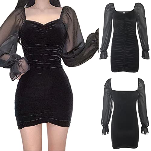 Vestito da donna, tinta unita, collo Sweetheart a maniche lunghe, confezione da Hip One Piece per l'estate, nero, S/M/L, Nero, M