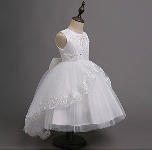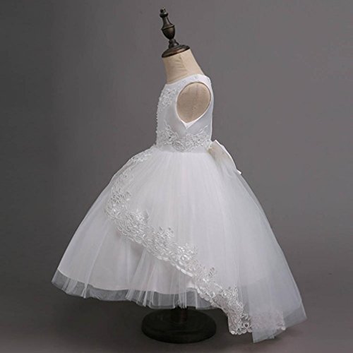 Vestito Fiore per Ragazze Vintage Pizzo Damigella d'Onore Nozze Abiti in Tulle Festa Maxi Alto Basso Toga Fantasia Senza Maniche Danza Tutus Principessa Abiti Clearance (Bianca, 9T)
