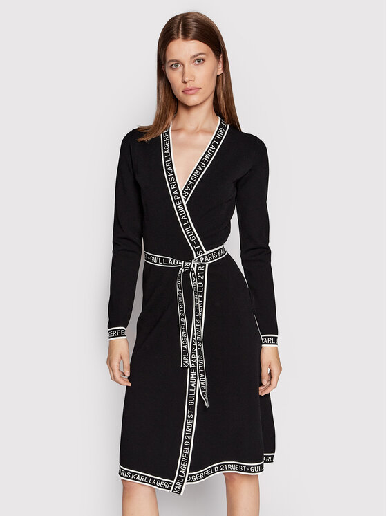 KARL LAGERFELD Vestito di maglia Wrap 215W1330 Nero Regular Fit