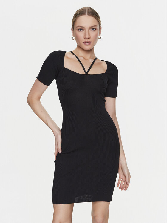 Simple Vestito di maglia SUD003 Nero Slim Fit