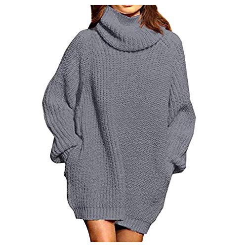 ✔ Abiti invernali da donna in maglia con abito a collo alto, abito maglione vintage, abito oversize a maniche lunghe, mini abito tinta unita, mini abiti larghi.