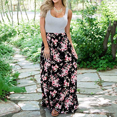 N/AB Vestito per mamma figlia colore corallo, lunghezza irregolare, abito lungo, estivo, casual, stampa senza maniche, per la famiglia Mom-nero. L