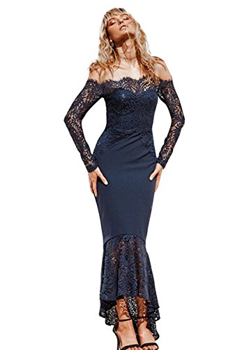 ☛ Abiti vintage in pizzo con spalle scoperte adatti per abiti da giorno, da party, da club, con uno stile casual, maniche lunghe e tinta unita, la lunghezza semplice e maxi ti fanno sembrare più snella, adatta per l'uso quotidiano!
