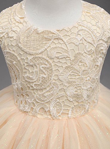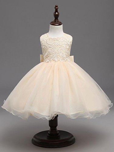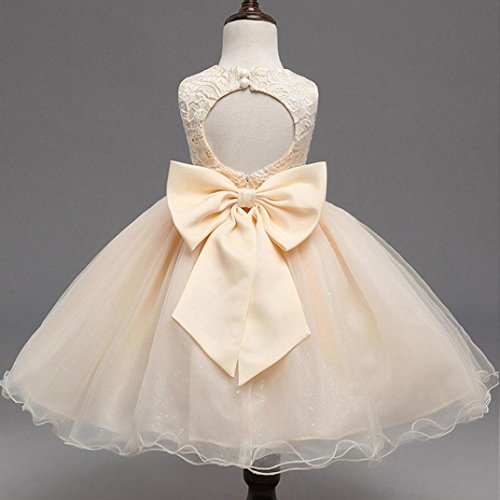 Vestito Principessa per Ragazza Pizzo Abiti Ricamo Bowknot Floreale Stampare Senza Schienale Comunione Cerimonia Compleanno Natale Carnevale Abito Tutu Summer Dress (Beige, 5T)