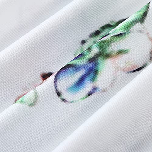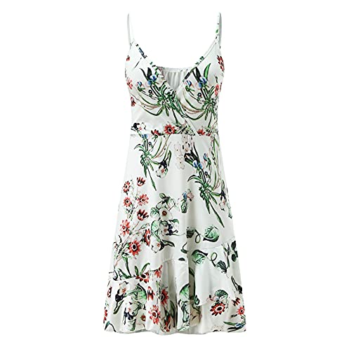 Vestito da spiaggia con fiori, lunghezza al ginocchio, estivo, motivo floreale, corto, estivo, con scollo a V, senza maniche, estivo, da donna, bianco, S