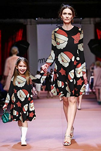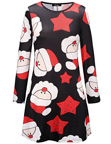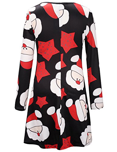 Vestito da Swing Vestito dal Vestito Svasato del Pullover di Stampa del Babbo Natale di Natale delle Donne