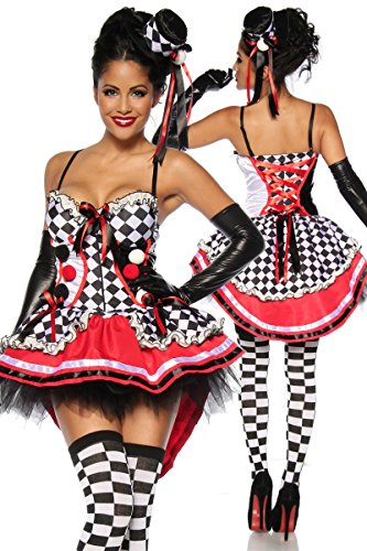 Vestito Travestimento Arlecchino da Donna - Rosso / Nero / Bianco - Multicolore, Altro, L