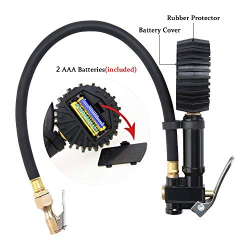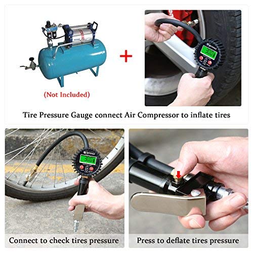 【Lettura digitale】: la pressione degli pneumatici verrà mostrata in modo digitale mentre la precisione è mantenuta ad un livello elevato e la luce verde dell'LCD rende molto facile vedere la pressione in situazioni di scarsa illuminazione.