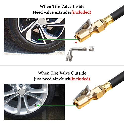 【Facile da usare】: l'estensore della valvola a 90 gradi e il cappuccio della valvola in metallo (incluso) consentono una rotazione di 360 gradi e collegano la valvola del pneumatico all'interno del pneumatico, mentre l'attacco maschio 1/4 "NPT funziona con qualsiasi 1/4 "Uscite del compressore d'aria NPT.