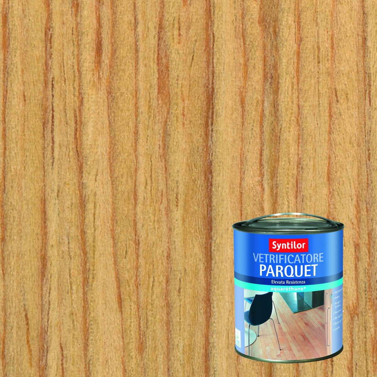 A Base Acqua. Ideale per parquet e scale in legno. Grazie alla tecnologia Flash Resist, il Vetrificatore essicca rapidamente, consentendo il riutilizzo dei locali in un giorno.. Resistente a calpestio, urti, macchie e graffi. Ad essicazione del Vetrificatore avvenuta il parquet non risulta scivoloso (testato secondo la norma NF EN 13036-4)