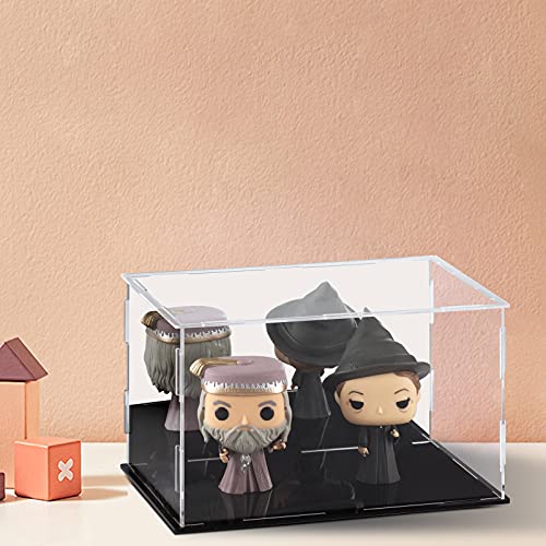 Vetrina in acrilico Scatola espositiva trasparente con cubo acrilico da appoggio a specchio per oggetti da collezione, action figure, figurine in miniatura Deposito giocattoli (Nero, 25x15x15cm)