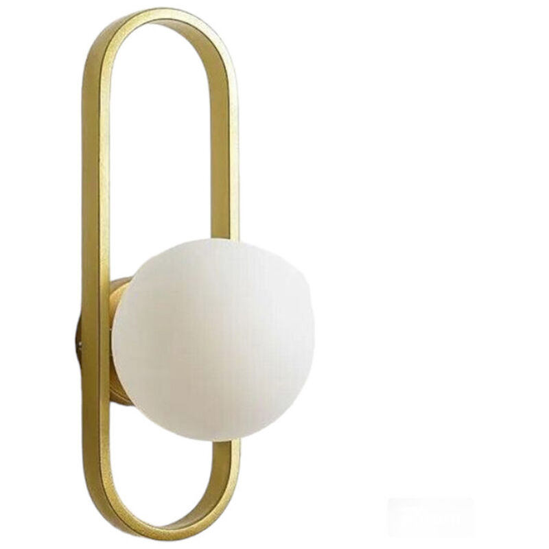 Applique parete dal design minimalista ed elegante, questa lampada da muro è stata pensata per illuminare e dare un tocco decorativo in punti specifici della casa. Ha una struttura in metallo a forma di ovale che circonda un paralume sferico in vetro opalino bianco. Puoi posizionare questa lampada come illuminazione e decorazione alla parete della tua camerta da letto, corridoio o open space. La lampada viene fornito senza lampadina, la sfera va utilizzata con una lampadina con attacco G9. Tipo di attacco: G9 (lampadine non incluse) Colore: Bronzo Materiale: Metallo e Vetro Tensione di ingresso:220-240V 50Hz Dimensioni: 42x12 cm Peso: 650 gr